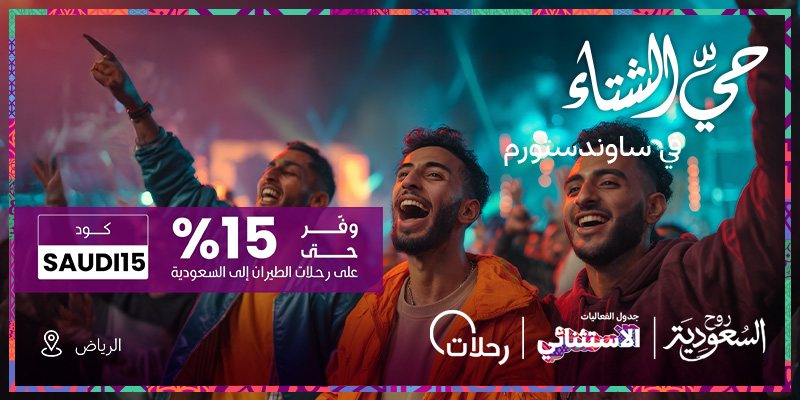 استخدم الكود: SAUDI15 واحصل على خصم حتى ١٥% على رحلات الطيران الدولية.